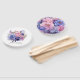 Petal pink, cornflower blue, and mauve purple floral wedding favour fan customisable to your event specifics.
