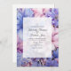 Petal pink, cornflower blue, and mauve purple floral wedding invitation customisable to your event specifics.