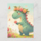 This adorable cartoon dinosaur with flowers on its head is the perfect addition to the life of any dinosaur lover. The vibrant colours and whimsical design will surely bring a smile to anyone's face.