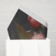 This artwork features a striking black background adorned with delicate pink and white florals.