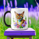 Petals and Purr Cute Cat and Pretty Flowers Magic Mug