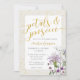This bridal petals and prosecco invitation features wildflowers in shades of periwinkle, pink and white. The wording is in a gold sparkle design and the background is sprinkled with lots of gold bling sparkles.