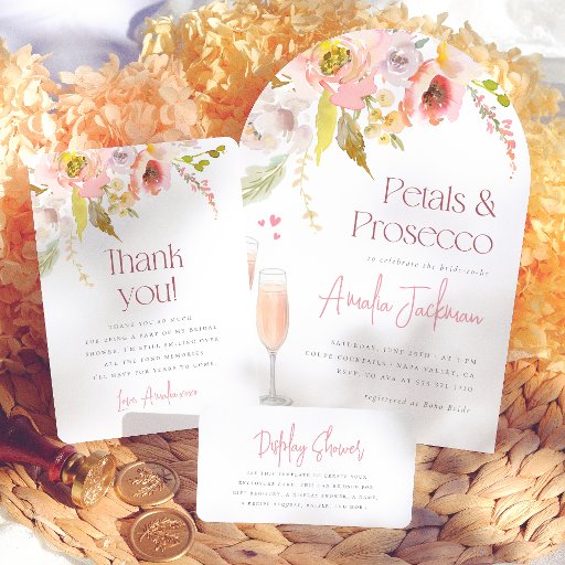 Petals & Prosecco Floral Arch Bridal Shower Invitation