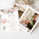 Bohemian inspired petals and prosecco bridal shower invitation featuring two lovely blush floral arrangements and a blush colored glass. This bridal shower invitation also includes a faux rose gold petals and prosecco modern calligraphy image heading, QR code and photo.