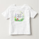 This design features a brown bunny as Peter Cotton Tail. He is sitting in a bed of greens and flowers shaped in a horseshoe. The flowers in blue, green, purple and yellow are in bloom and at the top is a bird perched on a vine of flowers. These tees are available in assorted styles, colours and sizes.