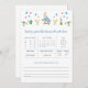 The BEATRIX Peter Rabbit baby shower predictions and advice game design features a white background with watercolor Peter Rabbit with elements from the garden, "baby predictions + advice" in a fancy serif in blue, the wording "advice for the parents to be" in a blue font. This baby predictions & advice game template is the perfect choice for a The Tale of Peter Rabbit baby shower game.