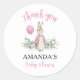 Watercolor Peter Rabbit Pink Baby Shower Thank you Classic Round Sticker. Matching items available.