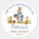 Peter rabbit with acorns fall baby shower template thank you favour stickers. A cute bunny in a blue jacket with acorn basket acorns and oak leaves for a baby boy baby shower favour gift stickers