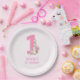 Watercolor Peter Rabbit | Pink First Birthday Paper Plates. Matching items available.
