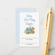 Peter rabbit with a blue jacket blue flowers baby shower guess how many carrots game card. A cute bunny in a blue jacket standing in a blue bell garden for a baby boy baby shower game cards