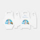 This design is a colourful watercolor painted rainbow and clouds with Peter Rabbit pushing a wheelbarrow with carrots. Matching invitations and party supplies are available in this collection suite.