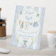 A Charming Delivery from Mr. McGregor's Garden! The Diaper Raffle Pedestal Sign features a custom hand-painted frame of a crisp blue vertical stripe pattern accented with a lush greenery wreath, creating a clean, classic, and welcoming look. A sweet watercolor clothesline is strung across the centre, proudly displaying tiny, adorable items, each subtly featuring Peter Rabbit. The scene is completed with a darling blue bow holding a bunch of fresh carrots, and bright, cheerful daffodils, all rendered in a soft watercolor style. Easily add your own details and change the font style, size colour and placement if you would like to. This cute sign invites your guests for a fun game in the "hoppy" anticipation of your baby boy's arrival!