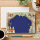 This gender neutral baby shower theme features Peter the Rabbit, his family and his pals in a forest and meadow setting. The palette is colourful with a dark blue background and light coloured text. Beatrix Potter illustrations are included on the front and back, You can easily fill in the template with your own details or go into further editing to change the font style, size, colour and placement if you wish. See the matching items in the Peter the Rabbit Forest Friends Baby Shower Collection.