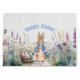 Peter the rabbit with a wildflower background and a Happy Easter greeting