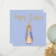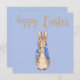 Peter the Rabbit on a Blue Background. "Happy Easter" text in gold.