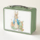 This is a standard metal lunchbox that appears to work just fine. We designed this box ourselves with an uploaded photo and custom text on the front and back. It looks absolutely beautiful except the front of the lunchbox is not centered like it shows in the photo. The print borders don't align with the inset flat part of the box where the preview photo online showed it perfectly centered in there. The back looks nice and centered though.