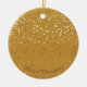 Christmas Ornament shown in Orche [Golden Rod colour] with a round shape with a cute holiday petite Golden stars print and text of Merry Christmas. Customise this item or buy as is.