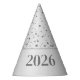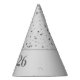 This party hat is shown in silver with a print of fun silver petite stars on it.
