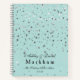 This custom notebook comes with a choice of paper styles to choose from and shapes. Here is shown the plain paper choice which could be used as a photo album or guest book if you choose. Colour shown is dusty aqua with silver coloured petite stars on both the front and back cover. Preformatted text for you to personalise with your names and date or other text if desired.