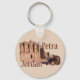 Petra is an incredible city carved into the red sandstone mountains of Jordan in the Middle East. The ancient monastery has served as a Nabataen Tomb and a Byzantine Church. In this image, a donkey, adorned with colorful blankets, stands overlooking the amazing architectural structure. This design makes a great, travel souvenir! This keychain is fully customizable.
