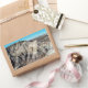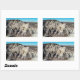 Eye-catching rectangular stickers feature a distinctive photograph of tall desert mountains in the Blue Mesa badlands of Petrified Forest National Park near Holbrook, Arizona. The multi-coloured rock mountains have many crevices and crags filled with shadows showcasing the texture of the formations. A clear blue sky contrasts the desert landscape.