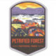 A vintage travel badge design of Petrified Forest National Park, an American national park in Navajo and Apache counties in Arizona, United States.