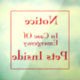 "Notice, In Case Of Emergency Pets Inside. Adheres to inside of window, will read correctly from the outside.