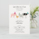 A hand drawn cute petting zoo party animals design featuring illustrations of a pig, chicken, sheep and cow . A beautiful petting zoo themed design ideal for kids petting zoo themed birthday parties. Customize this cute petting zoo animals birthday invitation and make it your own!