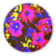 A vibrant blue, purple, red, yellow and black pop art design of petunias.