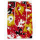 A vibrant red, yellow, black and white pop art design of petunias.