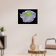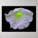 This pretty poster features a photograph of a petunia flower that has been manipulated to make the centre of the flower glow bright green. The outer petals are white and the veins running out from the centre of the flower also glow green. The flower is on a black background to make it stand out. A green border completes the design.