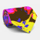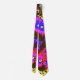 A vibrant blue, purple, red, yellow and black pop art design of petunias.
