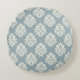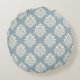 Pewter Blue and Alabaster Damask Round Throw Pillow