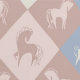 Pferde und Rautenmuster in blau, altrosa und creme