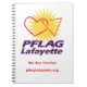 This notebook is perfect for you to record your dreams, plans and goals for the LGBTQ community in and around Lafayette Parish, LA! You can take it anywhere and show off your PFLAG Lafayette Pride, take notes at school, take minutes in meetings, and so on. Keep everything in one place with your very own PFLAG Lafayette Notebook! Lined paper included with our logo and motto on the front!