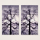 A photograph of a winter tree with the sun behind it, digitally manipulated to look like a fantastical spectre with its hand upraised, the bright light shining through the branches and darker grey and lavender clouds swirling around the "fingers".