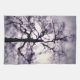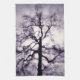 A photograph of a winter tree with the sun behind it, digitally manipulated to look like a fantastical spectre with its hand upraised, the bright light shining through the branches and darker grey and lavender clouds swirling around the "fingers".