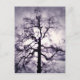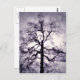 A photograph of a winter tree with the sun behind it, digitally manipulated to look like a fantastical spectre with its hand upraised, the bright light shining through the branches and darker grey and lavender clouds swirling around the "fingers".