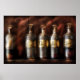 Five mostly empty bottles. At one point they had some kind of ingredient for some kind of cure. Now they look a bit thick, but quaint none the less.