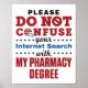 Funny gift for pharmacist. Design says: "Please do not confuse your internet search with my pharmacy degree."