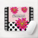 Pharmacist Whimsical Pink and Orange flowers and pharmacist abbreviations background with black and white polka dots. Artsy and unique gifts for pharmacists.