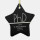 A keepsake star PhD graduation ornament with a black and white. Customise these items, add them to your cart, and celebrate this major achievement.