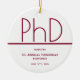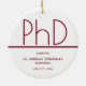 Keepsake ornament for a PhD graduation with a white and burgundy design. Simply customise these items, add them to your cart, and celebrate this major achievement.