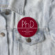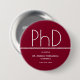 A favour button celebrating a PhD graduate with a burgundy and white design. This item is part of a graduation party collection that includes an invitation, photo announcement, paper napkins, place cards, and more. Customise these items, add them to your cart, and celebrate this major achievement.