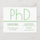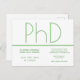A postcard invitation for a PhD graduation party. This minimalist invitation is white and green. All the words can be customised.