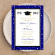 This PhD Doctoral graduation announcement features confetti on blue in the background with the actual graduation details appearing on white. A graduation cap is the focal point with the year of graduation to the right and the word "PhD" to the left. A great way to announce a PhD graduation. Copyright henishouseofpaper
