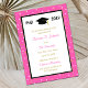 This great PhD Doctoral graduation announcement features confetti on pink in the background with all the graduation details on white. A graduation cap appears on top with the word "PhD" to the left and the Year of graduation to the right. A great way to announce a PhD graduation. Copyright henishouseofpaper