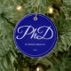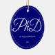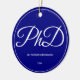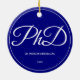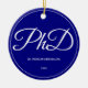An ornament for a PhD graduate with a blue and white scheme. It shows the degree, name, and year. Simply customise this ornament, add it to your cart, and have a keepsake of this major achievement.