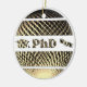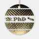 This product is a golden ornament for a successful PhD graduate. It is a nice gift for a doctoral student from family, friends and colleagues at the PhD defence. The elegant design features a golden disco ball with the word PhD.