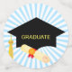 PhD Graduation Stars on Black. Blue & White Confetti